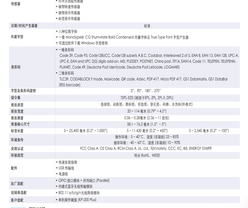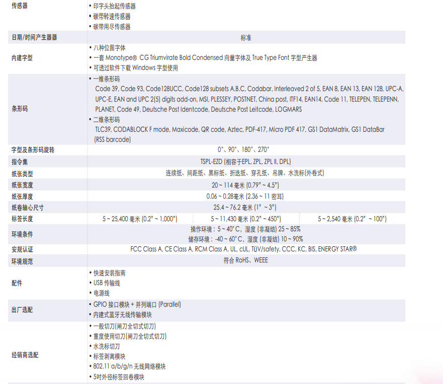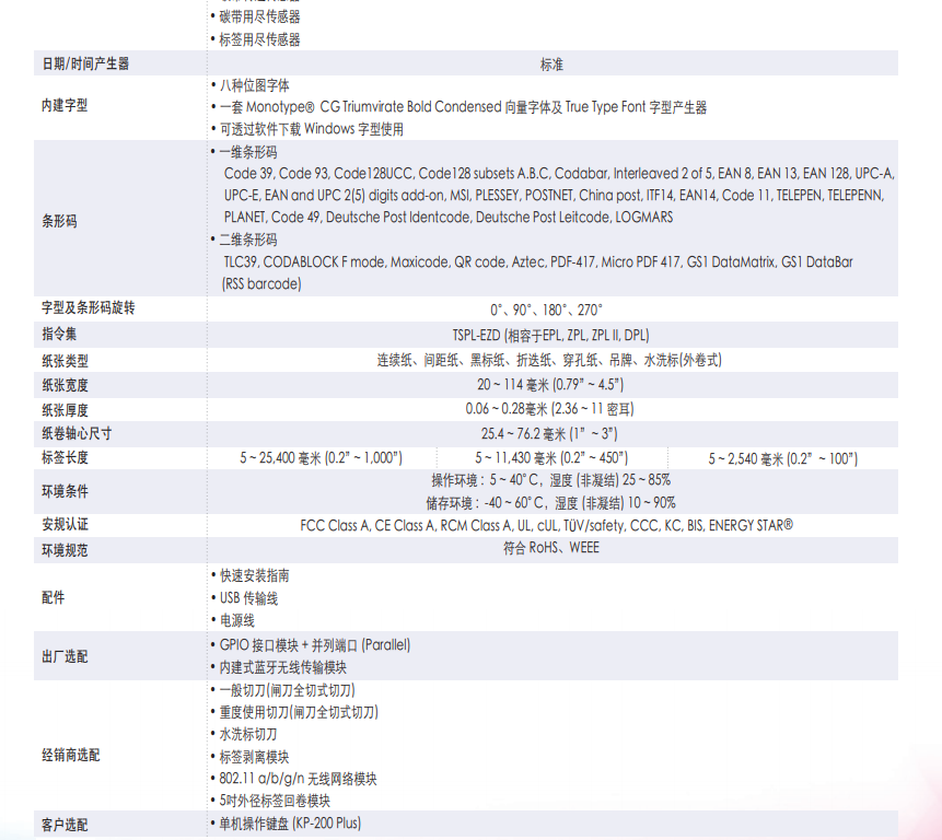 完整的選購(gòu)配件:標(biāo)簽剝離模組、GPIO介面模組、藍(lán)牙無(wú)線傳輸模組、802.11 a/b/g/n 無(wú)線網(wǎng)路模組、多款切刀選擇