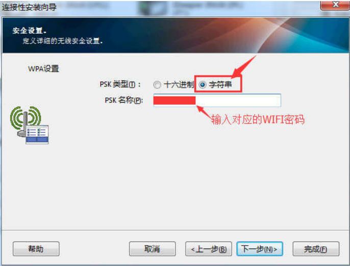 7、 選擇字符串,輸入對應(yīng)的 WIFI 密碼,點(diǎn)擊下一步;